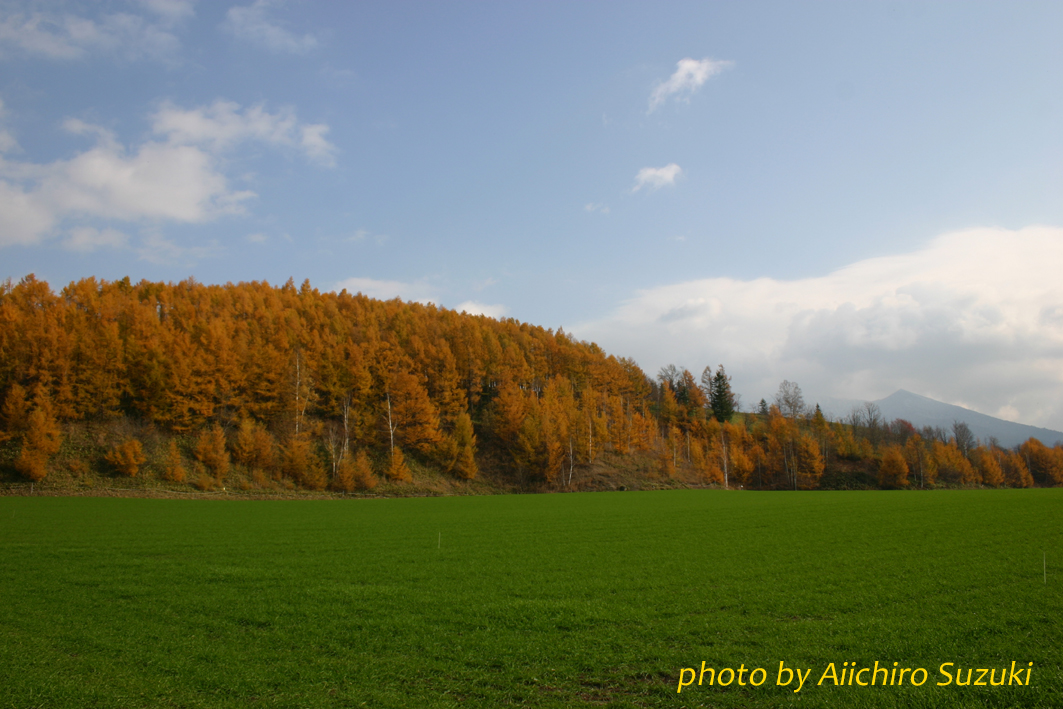 麓郷から美瑛に向かう途中、美しいカラ松の紅葉に出会いました。