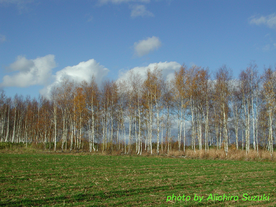 白樺の紅葉は、青空をバックにするとひときわ美しく見えます。