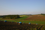 高台から見下ろすカラマツの紅葉と秋蒔き小麦の緑とのコントラストが絶妙でした。