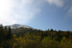 この年の初冠雪。紅葉の向こうに白い山が輝いていました。