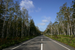 まっすぐに続く白樺の道。