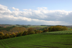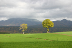 秋の丘に浮かび上がった光と陰のコントラスト。 |