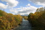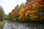 紅葉と美瑛川の青い流れ。
