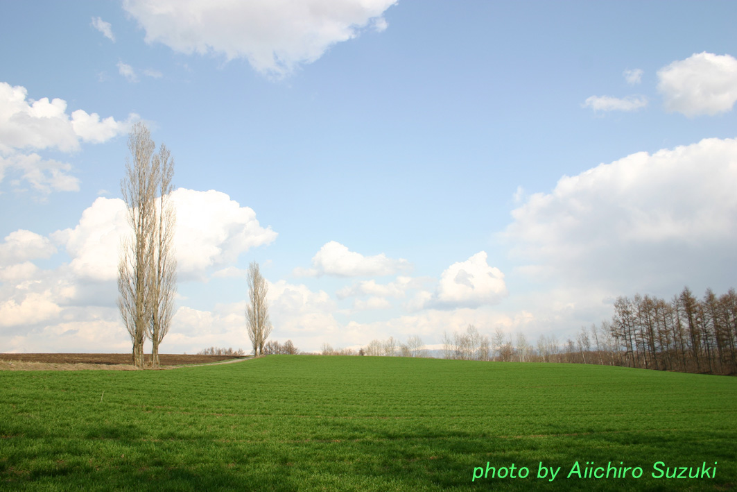 ポプラの木の新緑もこれから…。