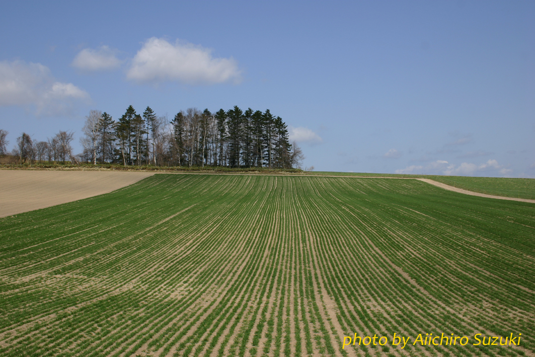 春の青空に向かって冬を越えた麦が連なって延びていました。
