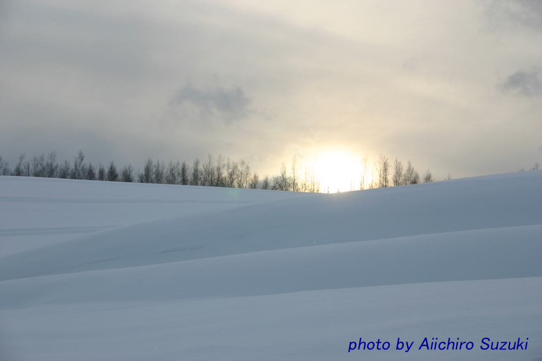 丘を見上げると、雪の斜面が幾重にも大きく波打っているようでした。
